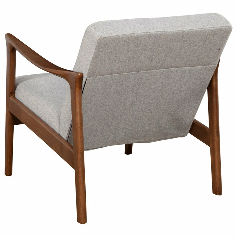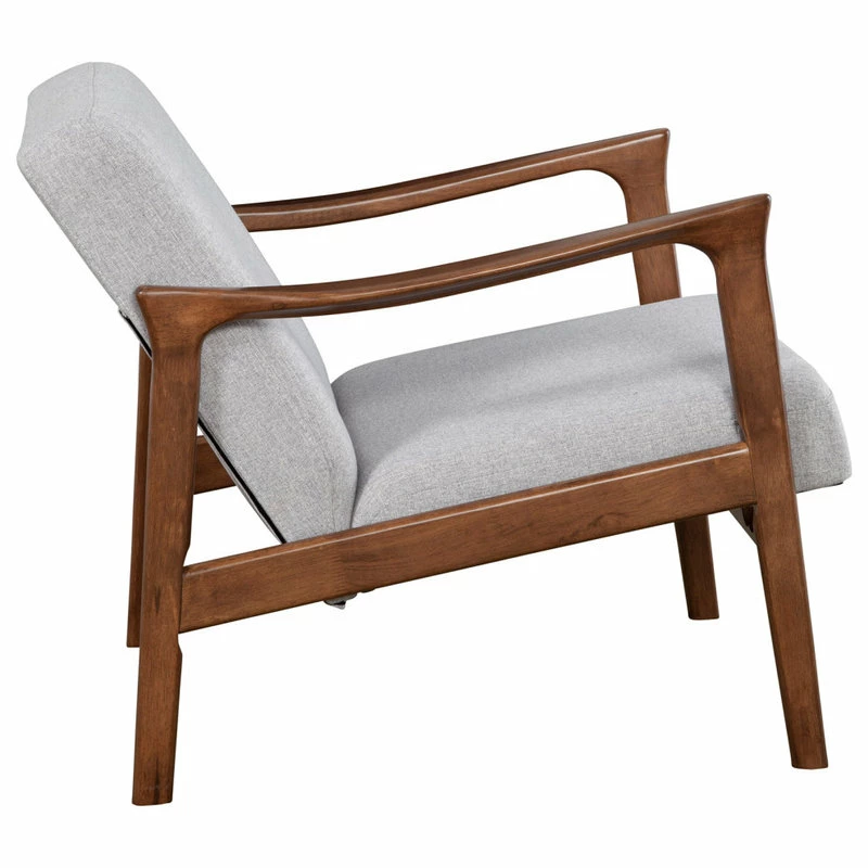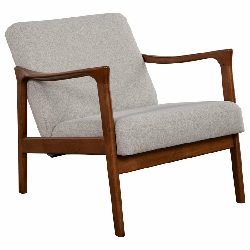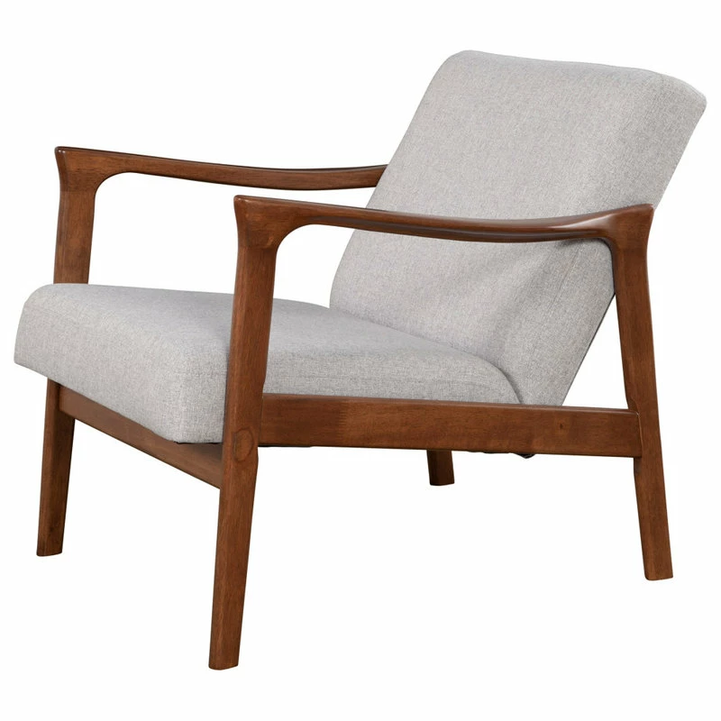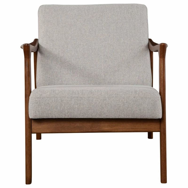 - Finish/Color: Medium Brown Frame, Light Grey Cushions