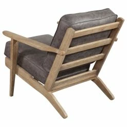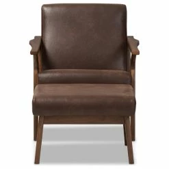 Baxton Studio Bianca Mid-Century Modern Distressed Lounge Chair, Dark Brown Faux Leather