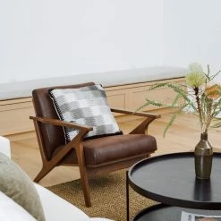 Abbyson Living Hammond Mid-Century Top Grain Leather Armchair, Camel