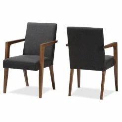 Baxton Studio Andrea Mid-Century Modern Dark Gray Upholstered Wooden Armchair, Set Of 2