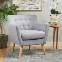 GDFStudio GDF Studio Madene Tufted Back Fabric/Microfiber Club Chair, Light Blue