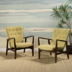 GDFStudio GDF Studio Suffolk French Style Fabric Arm Chairs, Wasabi, Set Of 2