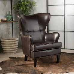 GDFStudio GDF Studio Romford Bonded Leather Wingback Club Chair, Brown