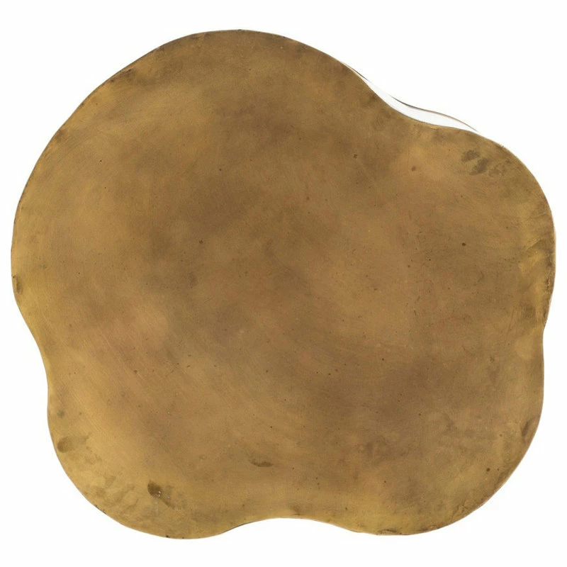 We love the irregular shape of this antique brass low side table. Try it next to a chaise or armless chair or use two in front of a sofa or sectional.