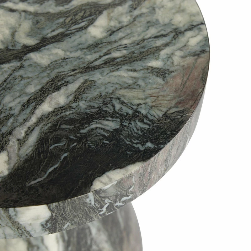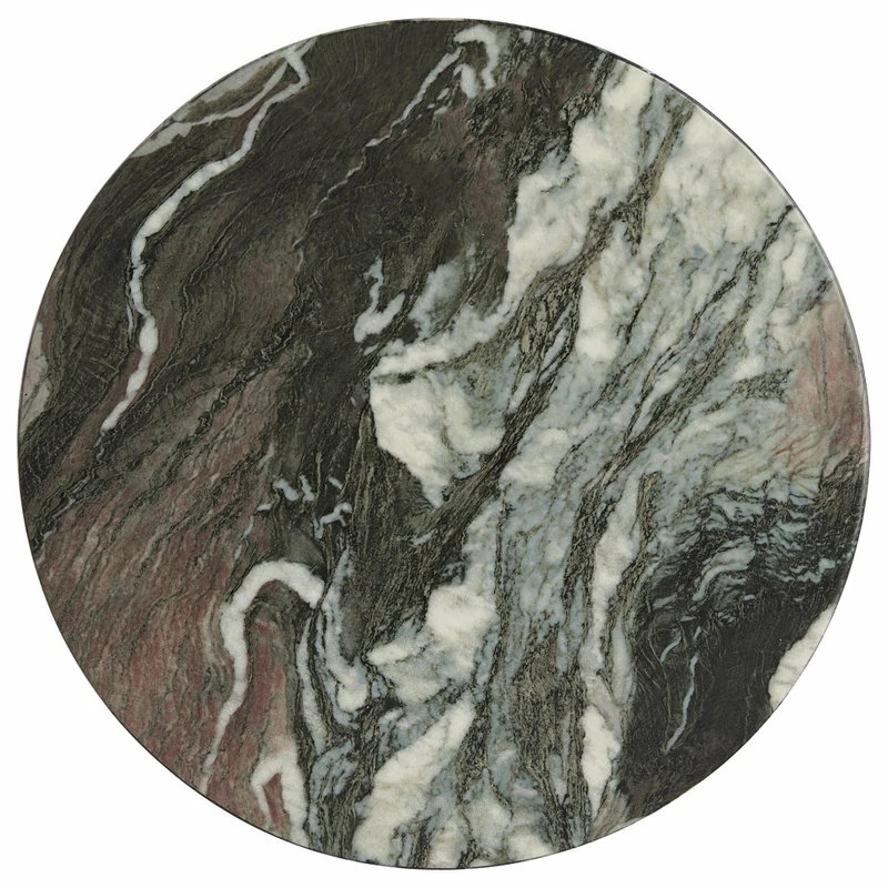 Tricky, like trompe l’oeil, this stunning table has a secret-though it looks to be made completely of stone, lift it and you’ll discover it’s actually much lighter in weight. Made from lightweight concrete, its marble-like facade is made in a process called hydrographics. Since the process is done individually, each piece will have a look that varies slightly in veining and color scale.