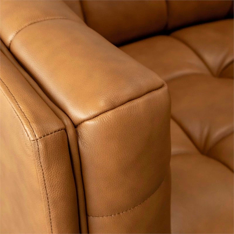 Combining top-quality craftmanship and high-density foam, this set will provide you with great comfort and undoubtedly become the centerpiece of your living room, den, urban loft, condo. All pieces are made of top grain genuine leather and can be cleaned with a microfiber cloth.
