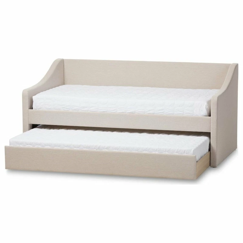 The Barnstorm modern and contemporary beige fabric upholstered daybed with guest trundle bed will help bring an understated but unmissable sense of contemporary taste to any modern interior. Covered in beige fabric, this sofa bed features a clean and distinct design that belies the high level of comfort offered. Constructed of hardwood, plywood and engineered wood, the Barnstorm is built too last. Featuring swooping arms, the Barnstorm is ideal as a daybed in its own while the wheeled trundle bed provides an additional sleeping space for your guest. Offering a number of different styling solution, this versatile 3-in-1 furniture multitasks as a daybed, sofa and guest bed. For studio apartment and condominium where space is limited, the Barnstorm could be your reading nook during the day time while transforming into your guest bed for two by rolling out the trundle. In your living room, family room or home office, the daybed is a good option for extra seating space during day time while transforming into guest bed for two at night.