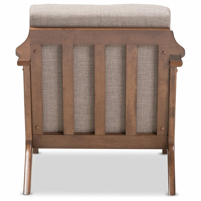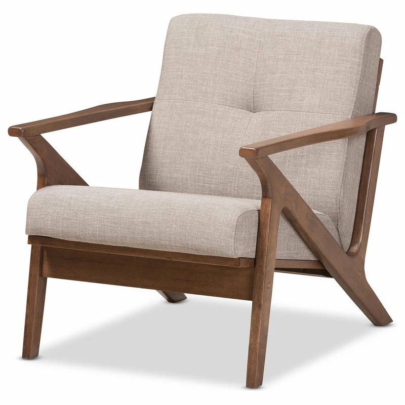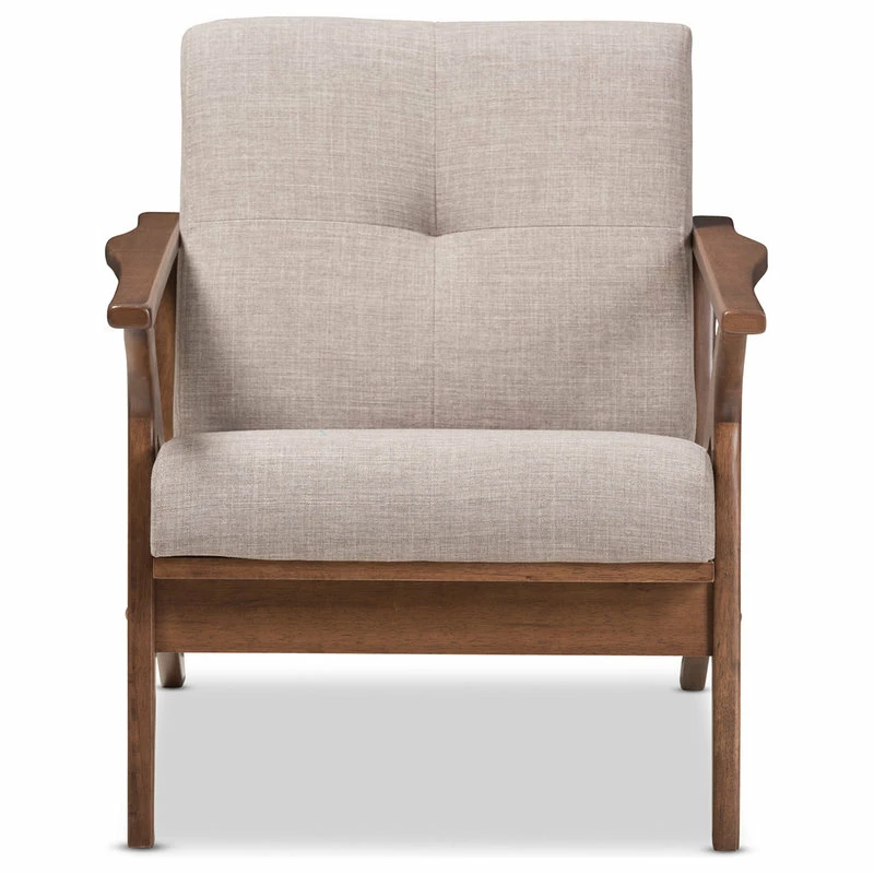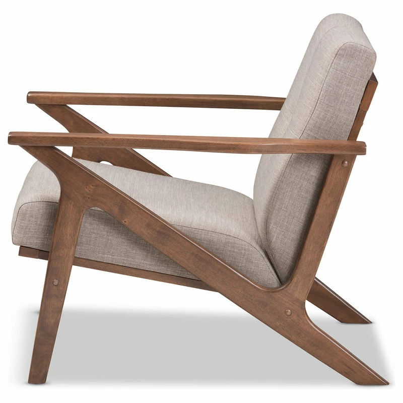 Baxton Studio Bianca Mid-Century Modern Distressed Lounge Chair, Light Gray Fabric