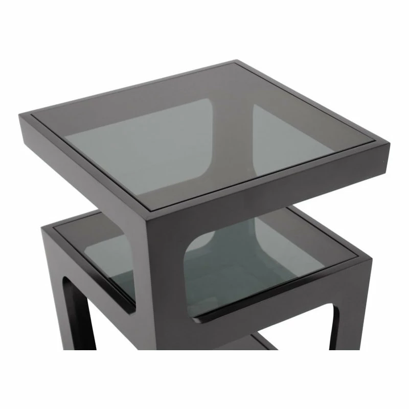 Baxton Studio Clara Black Modern End Table With 3, Tiered Glass Shelves