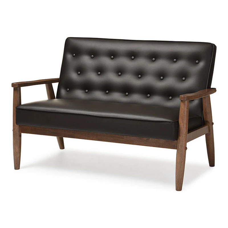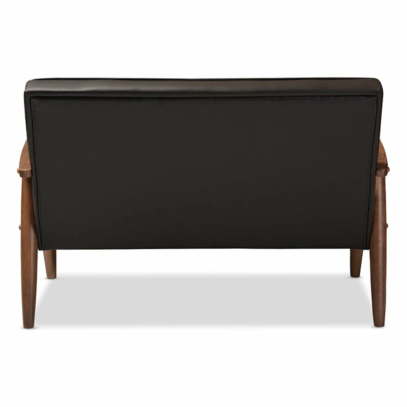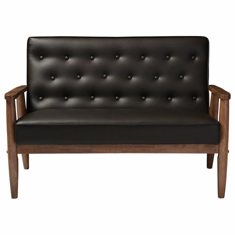 Baxton Studio Sorrento Retro Upholstered Wooden 2-Seater Loveseat, Brown Faux Leather