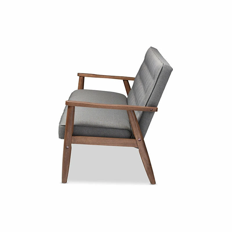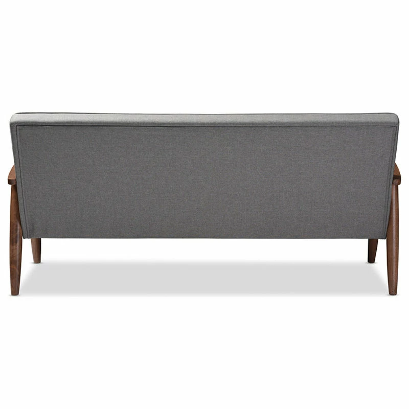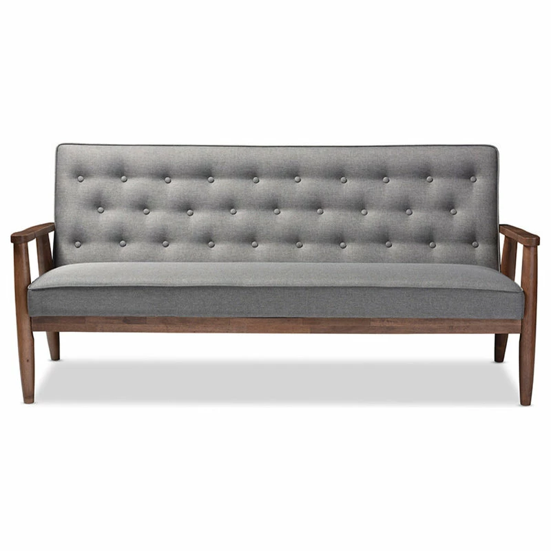 Baxton Studio Sorrento Retro Upholstered Wooden 3-Seater Sofa, Gray Fabric