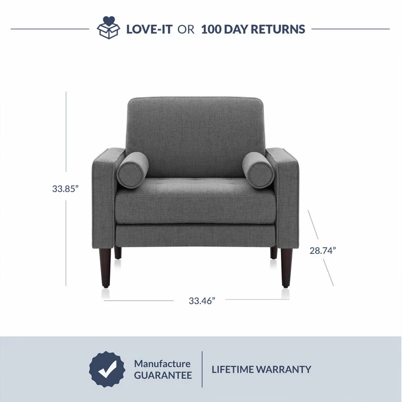 - Designed with square arms, tufted seat cushion, and bolster throw pillows, create a contemporary feel to class up your home or office.