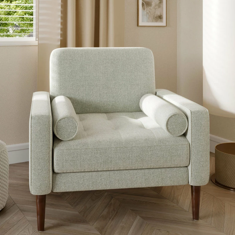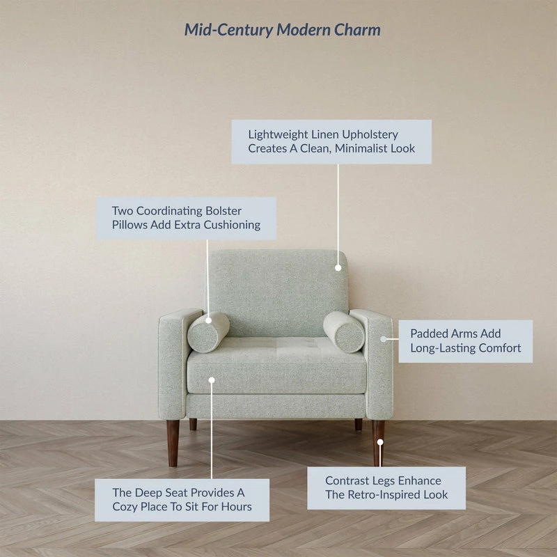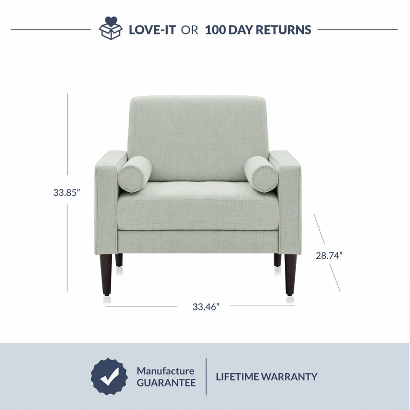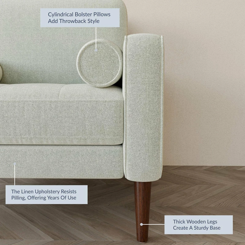 - Designed with square arms, tufted seat cushion, and bolster throw pillows, create a contemporary feel to class up your home or office.