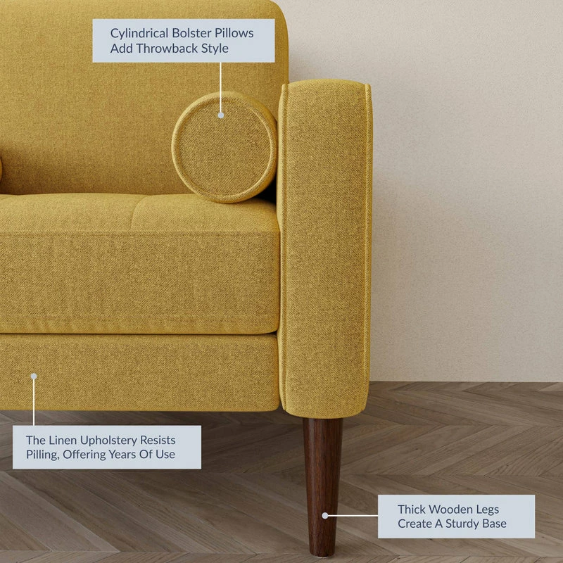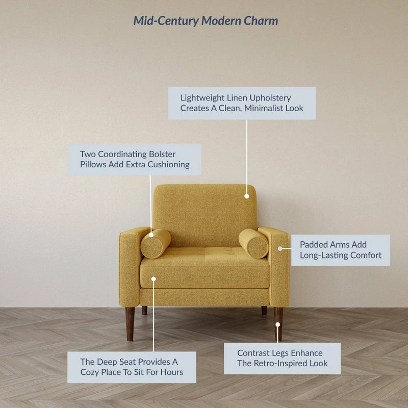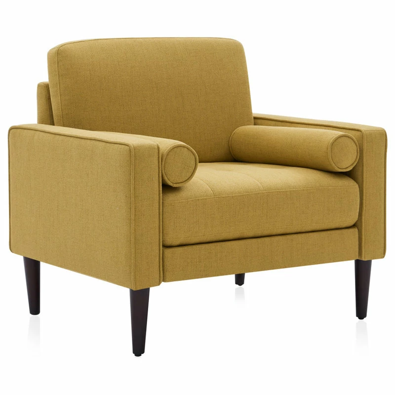 Belleze Erik Accent Chair Tufted Linen With Bolster Pillows, Yellow