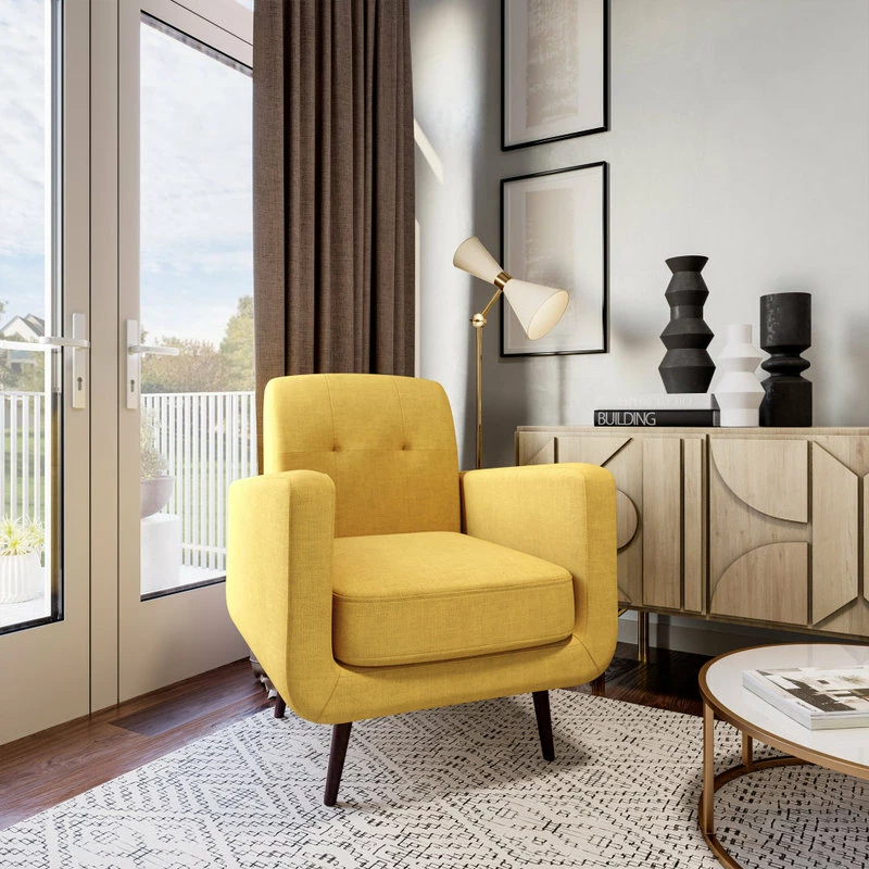 Belleze Hasting Arm Accent Chair Comfy Fabric Upholstered Tufted Single Sofa, Yellow
