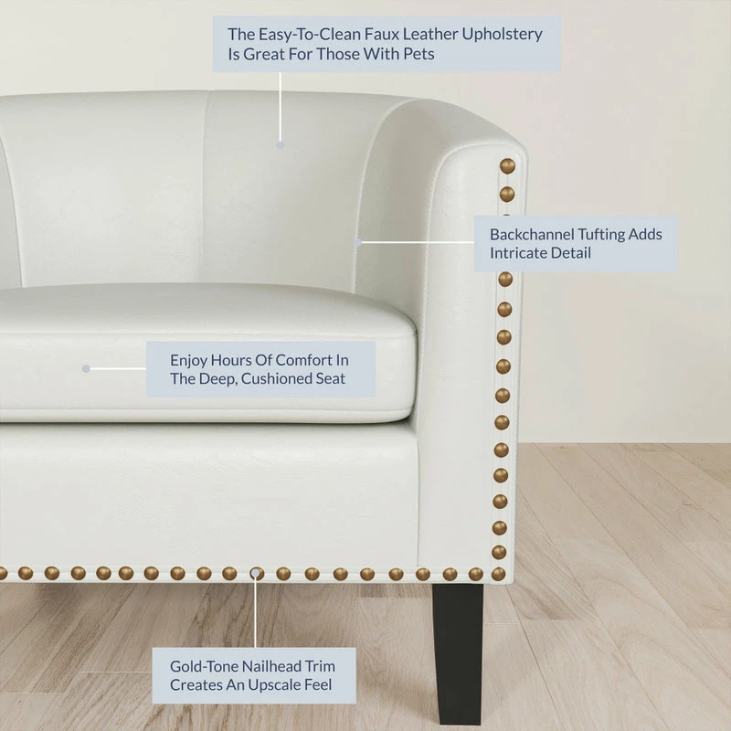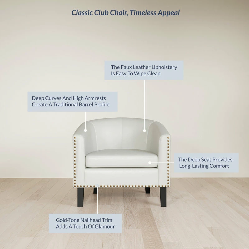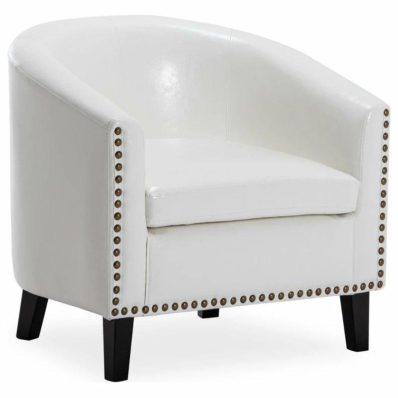 Add stylish extra seating with this Belleze faux-leather club chair. Boasting a sophisticated design, this contemporary tub chair features flared arms to provide your guests with a sturdy, comfortable place to rest their arms throughout their visit. The flared legs of the piece add an additional layer of style to the chair and make it easy for you to clean underneath it. Add a touch of elegance to any room with this beautiful accent chair from Belleze. With top stitching for durability, foam padding for comfort and solid wood legs for strength, this chair is sure to be a family favorite.