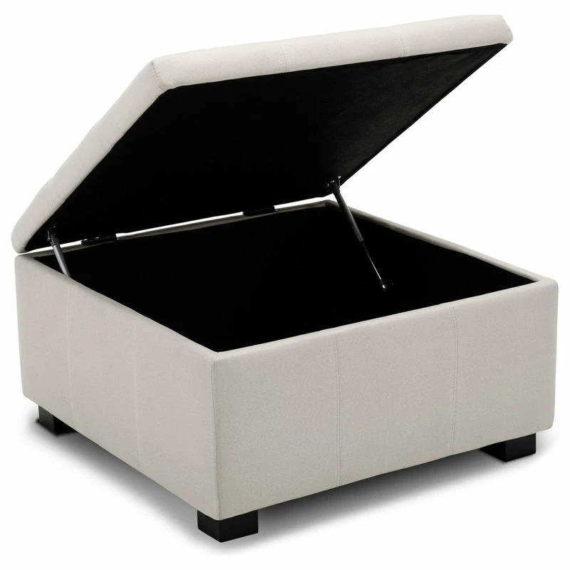 As versatile as it is stylish, this lovely storage ottoman is a must-have for your home. A perfect choice for contemporary ensembles, this charming design brings both modern style and essential storage space. The clean-lined design and neutral-toned upholstery lets this piece blend in with a variety of ensembles, while the seamed accenting & button tufts add a touch of stylish sophistication. The top can be lifted to reveal hidden interior storage. Set this ottoman at the center of your living room for the perfect place to rest your feet when watching the big game or set out a tray of movie night snacks on family nights. You can then use the storage space to tuck away spare throws, pillows, board games, and more.