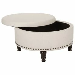 Providing contemporary style and hidden storage, this ottoman is an excellent addition to any seating ensemble. This dapper design strikes a drum-shaped silhouette with thick, round legs.