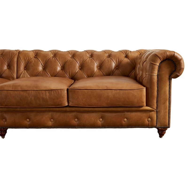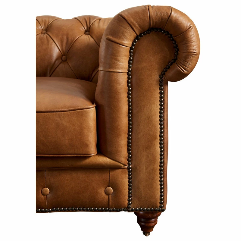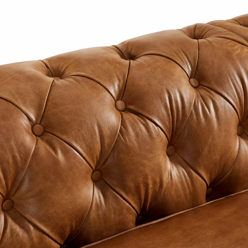 Crafters And Weavers Century Chesterfield Sofa Light Brown Leather 118″