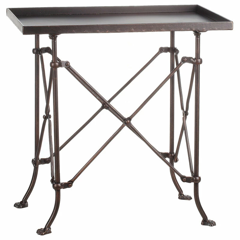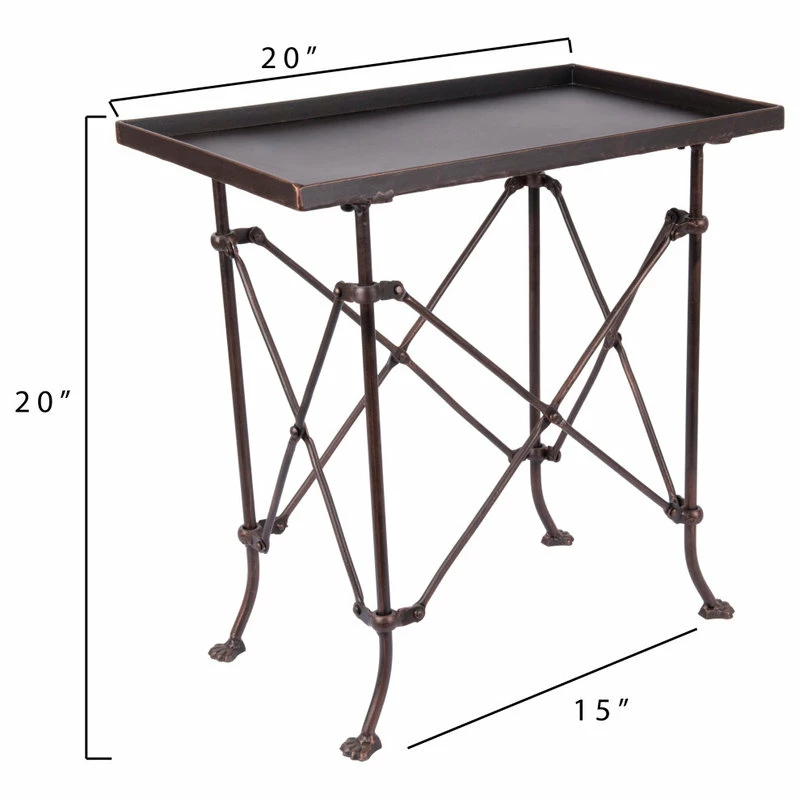 This handsome rustic bronze-finished metal table is just the perfect size to accent a chair or sofa. With it’s architectural structure and whimsical yet classical feet, it is sure to be a welcome addition to any home. The table is slim, sturdy and stylish. Its fashionable design makes it a classy addition to a traditional living room, dining room or office.