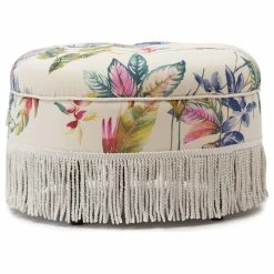 Jennifer Taylor Home Yolanda Tufted Round Ottoman With Bullion Trim, Beige Floral