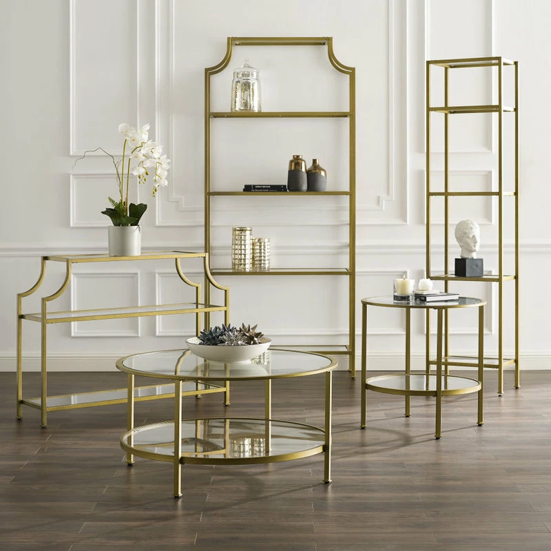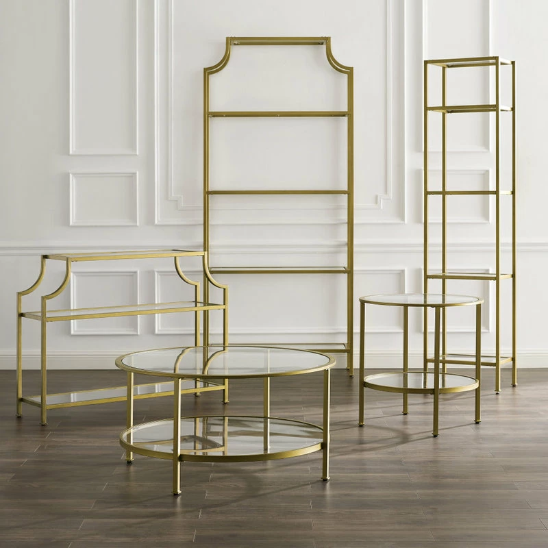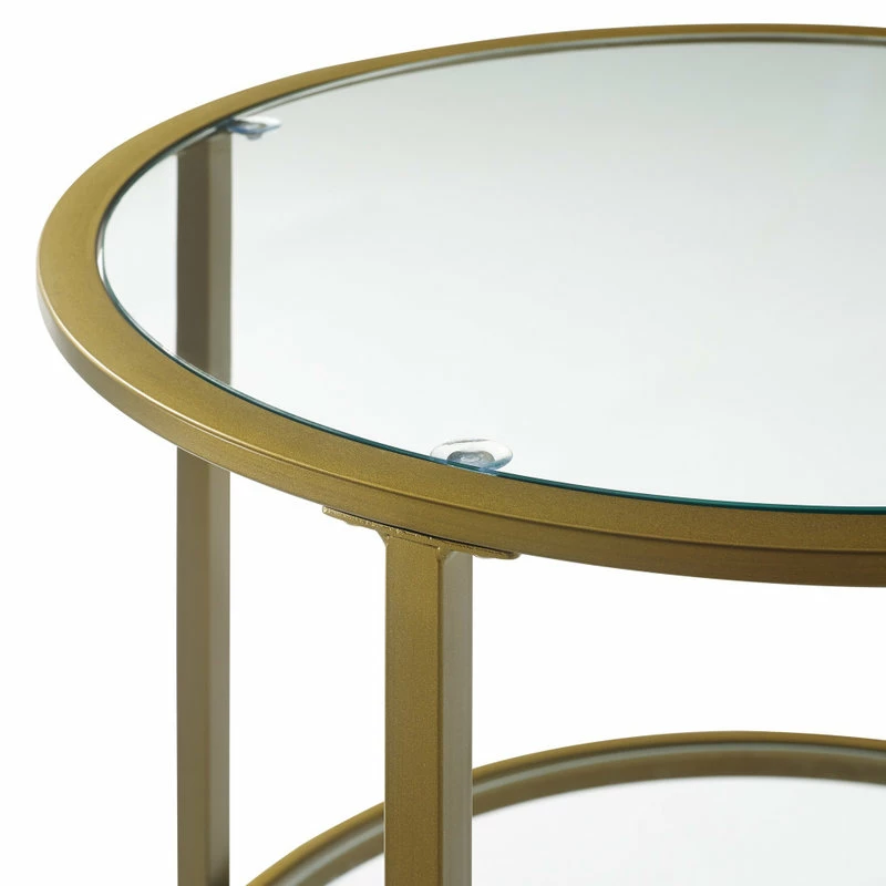 Showcase your refined style, with the eye-catching Aimee side table. This table features an openwork steel frame, warmed with a power-coated polish gold finish and a touch of antiquing. This side table is stylish enough to stand on its own, or it can be easily paired with the rest of the Aimee Collection.
