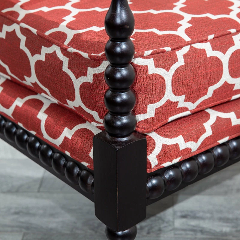 The chic and sophisticated Silverthorne Spindle Chair combines modern style and classic lines. This expertly crafted chair features a durable hardwood frame, padded armrest, fine wood finish and beautiful piping detail. The elegantly turned spindle elements and thick plush cushions create a graceful addition to any room.