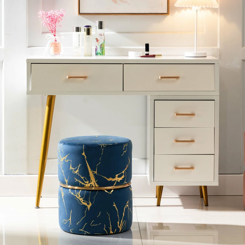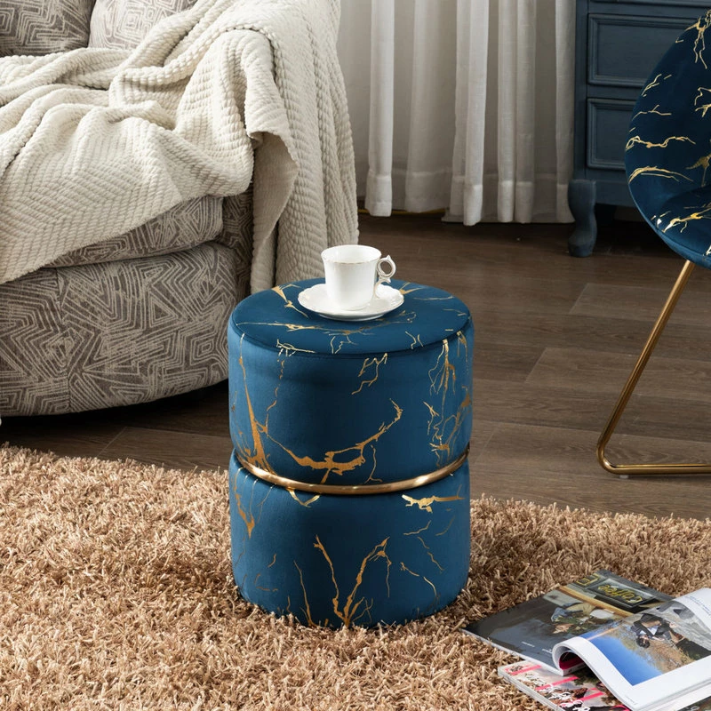 Duhome Elegant Lifestyle Luxury Hot Stamped Velvet Ottoman, Blue