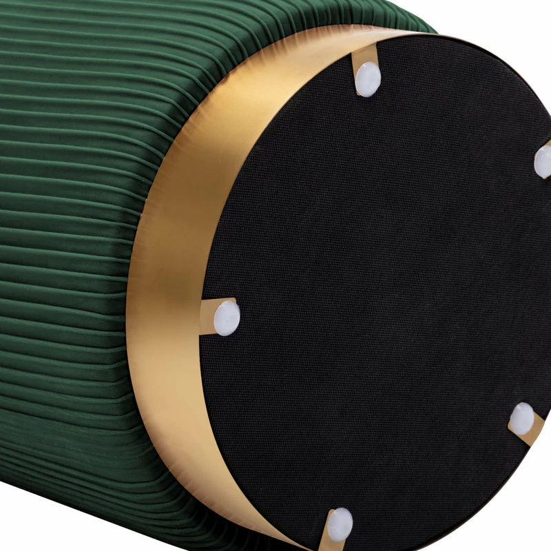 Duhome Elegant Lifestyle Round Pleated Golden Base Velvet Ottoman, Dark Green
