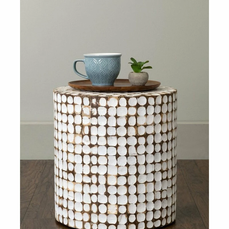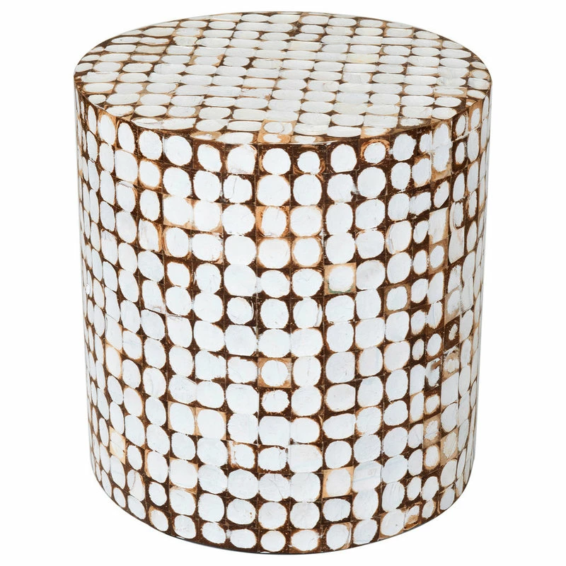 Showcasing a coconut shell inlay and whitewash finish, this end table brims with natural appeal for your living room or den. Place it atop a bold cowhide rug, then top it off with a stack of fashion reads and a decorative bowl for the perfect finishing touch.