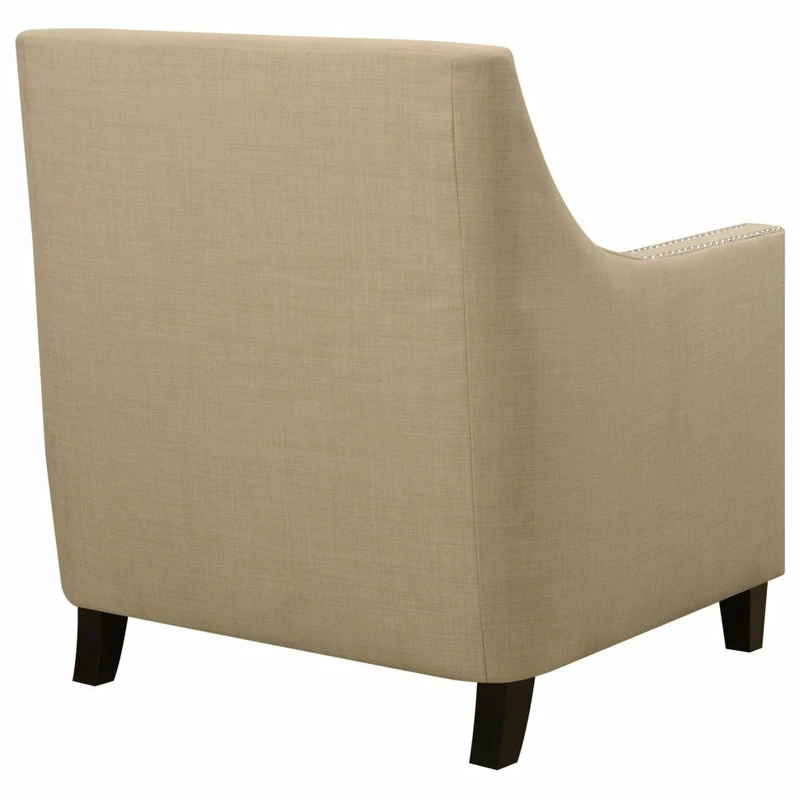- Trendy metal stud trim; Stylish low back; Contemporary straight edge arms; Espresso wooden feet