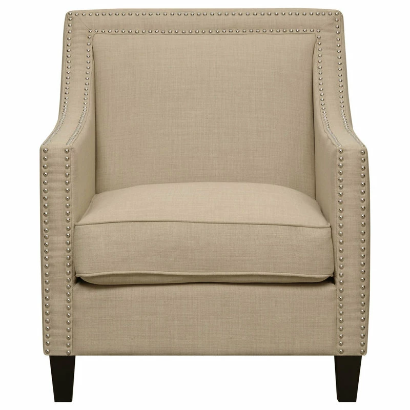 The Picket House Furnishings Emery Chair boasts a refreshing combination of contemporary design with a touch of vintage flare. Its clean lines, low back, and straight edge arms are accented by nail head trim and dressed in a fashionable natural fabric upholstery.
