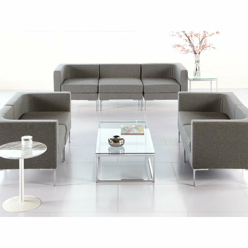 The proportions of these three tables (coffee, side and console) are iconic to say the least. Tops in clear or pure white glass float on perfectly geometric chrome steel bases. We’re talking Museum of Modern art here. Not really. But it’s the right thing to do.