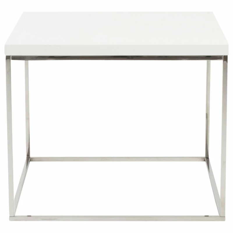The Teresa Side Table in white lacquer and polished stainless steel is perfectly designed for strength and style. Slender stainless steel legs provide a sturdy, modern base, while the tabletop is large enough to accommodate your favorite lamp. The simple shape complements a wide range of styles, and is a useful addition to the living room, study or home office.