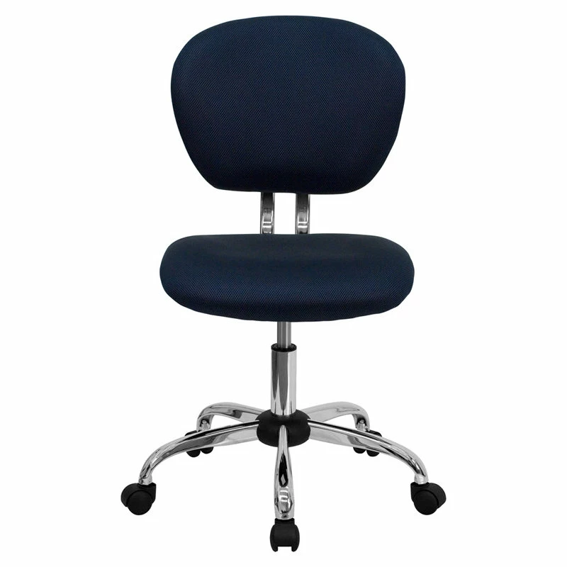 This mesh task chair supports you in comfort when you’re working long hours to get the job done. It features a mid-back design to support your mid-to-upper back region. The swivel seat and back are padded with 2″ of foam and covered in mesh upholstery. Raise and lower the seat using the pneumatic seat height adjustment lever, conveniently located under the seat. A heavy-duty, chrome base with dual wheel casters makes it easy to roll across the floor. Whether you’re sitting in class, studying for a final exam or working to beat a tight deadline, this stylish chair will keep you cool and comfortable throughout your busy day. [H-2376-F-NAVY-GG]
