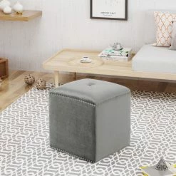 GDFStudio GDF Studio Chatsworth Tufted Fabric Storage Ottoman With Rolling Casters