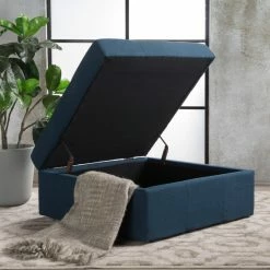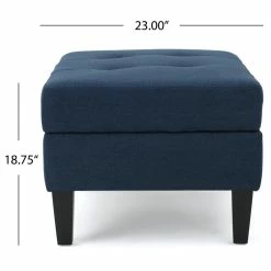 GDFStudio GDF Studio Carolina Tufted Cover Fabric Storage Ottoman, Dark Blue