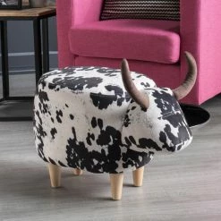 GDFStudio GDF Studio Bertha Milk Cow Patterned New Velvet Ottoman, Black/White Cow