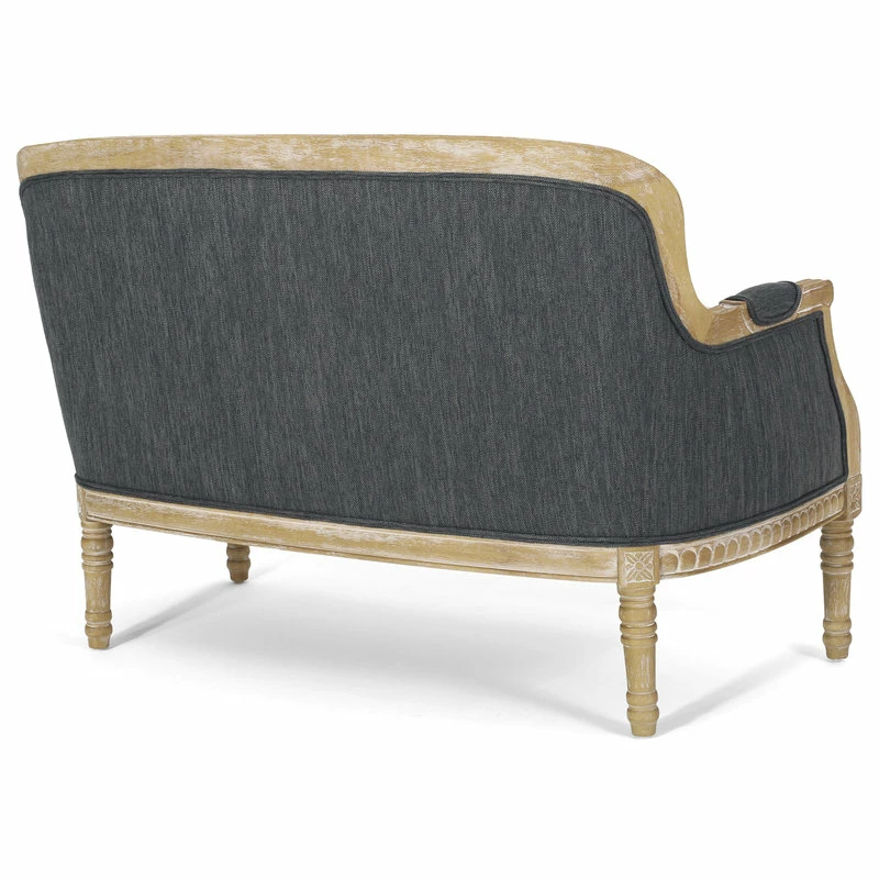 - FRENCH COUNTRY INSPIRATION: From slender turned legs to a beautiful upholstery, this loveseat offers a French country inspiration for your home. This piece features a wonderfully weathered wood frame and unique carvings to bring your home together with a classic touch.