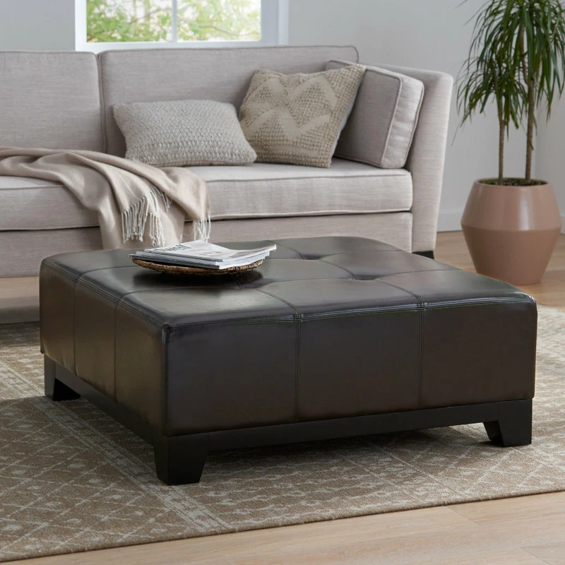 The Avalon ottoman works wonderfully in living rooms and bedrooms as a coffee table, ottoman or for extra seating. This ottoman is upholstered with fine espresso brown bonded leather that will enhance any room.