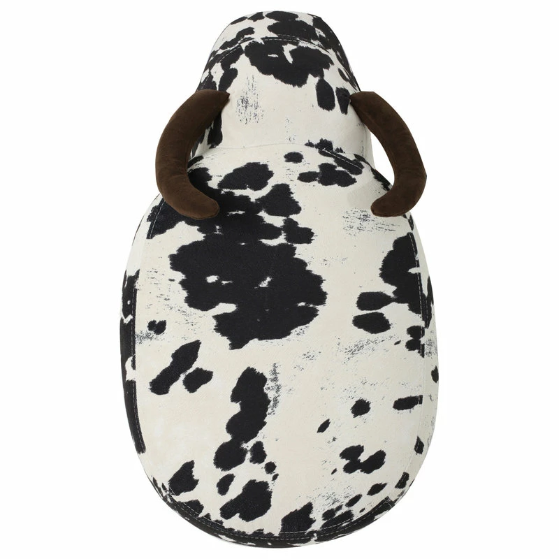 COW DESIGN: Our ottoman offers a charming cow design complete with its iconic spotting and longhorns.