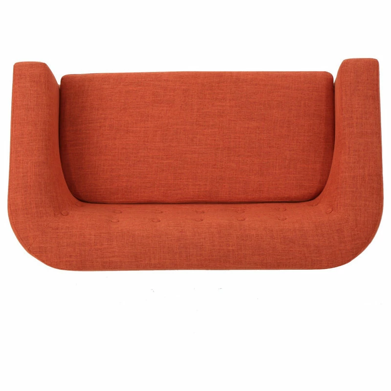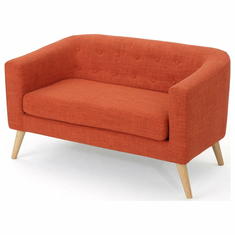 Treat your interior space to an outstanding seating addition that adds an abundance of retro charm to any room. Featuring button-tufted waffle stitching in the backrest and a cozy tub-shaped design, this exquisite loveseat is perfect for smaller living spaces. This takes a gorgeous classic look and brings an impressive modern twist, easily anchoring your decor in an atmosphere of elegance. Finished with iconic splayed legs, our loveseat brings a stunning mid-century modern look and outstanding durability to your home.
