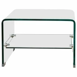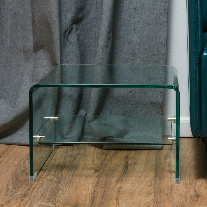 The Classon glass end table offers style and practicability to any home. It is constructed out of tempered glass which can easily store a wide range of belongings while never diminishing your home decor.