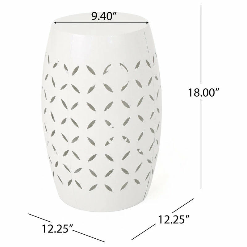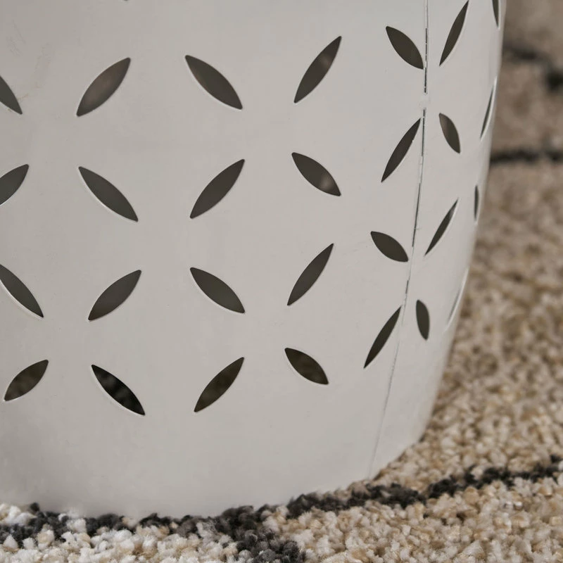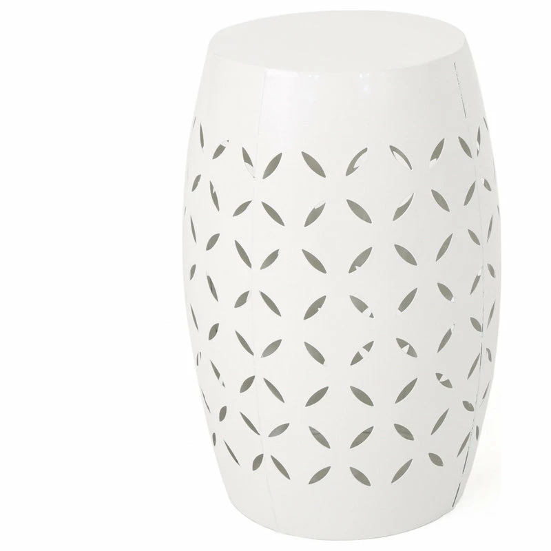 Featuring a unique and stable barrel shape, his beautiful lace-cut side table is a unique element for your patio, garden or backyard. Its all-metal construction will hold up to the weather and age very nicely. Ideal when combined with a chair to create a cozy corner, this might also be used as a place to display some special item.