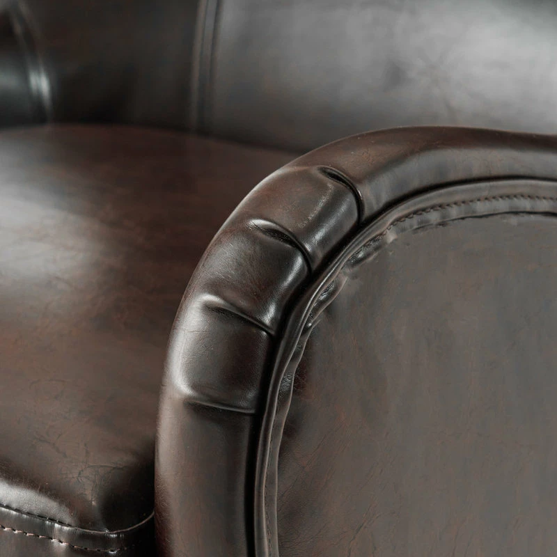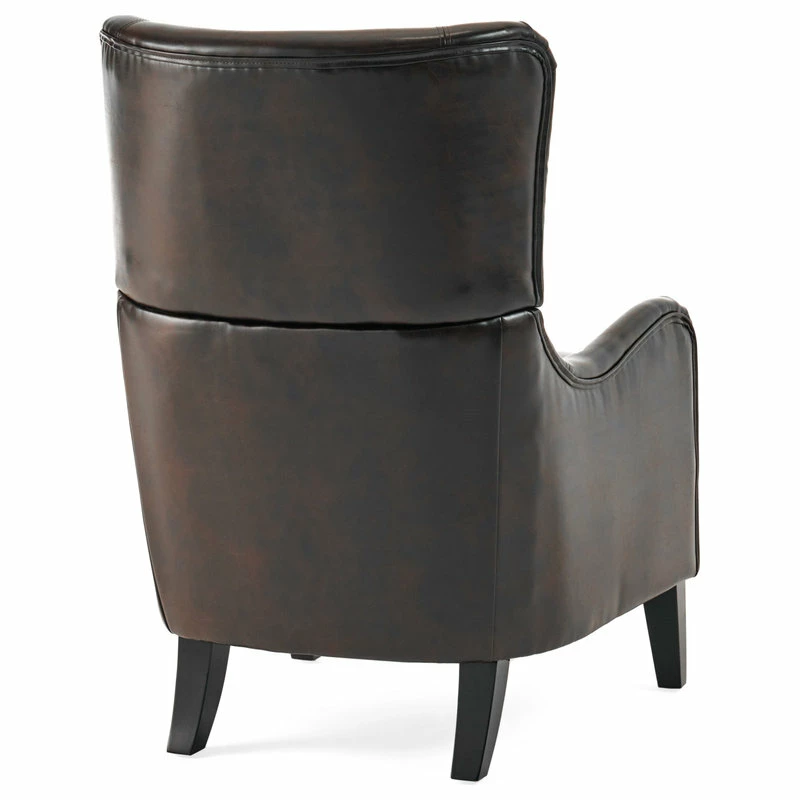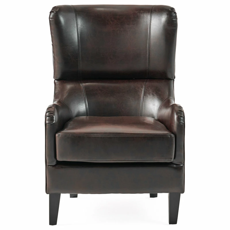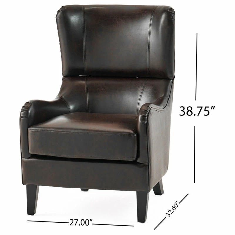 If you are looking to step away from traditional club chairs and own something with both class and a contemporary flair, then our Ellery Brown Leather Club Chair is the piece for you. Sink into this comfortable chair, made of soft, durable bonded leather with a sturdy real wood frame that will mesh beautifully with any decor, in any room. The beautiful, eye-catching bonded leather upholstery and modern twist on a classic look is sure to be the perfect chair for your living room, dining room, office, or study.