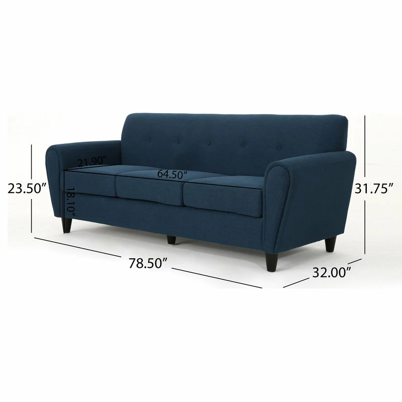 This buttoned, traditional, 3 seat sofa is a wonderful addition to any living room. Featuring 3 extra padded seat cushions for maximum comfort, this sofa is both stylish and comfortable. The graceful, understated design allows this sofa to blend perfectly with any furniture you currently have.