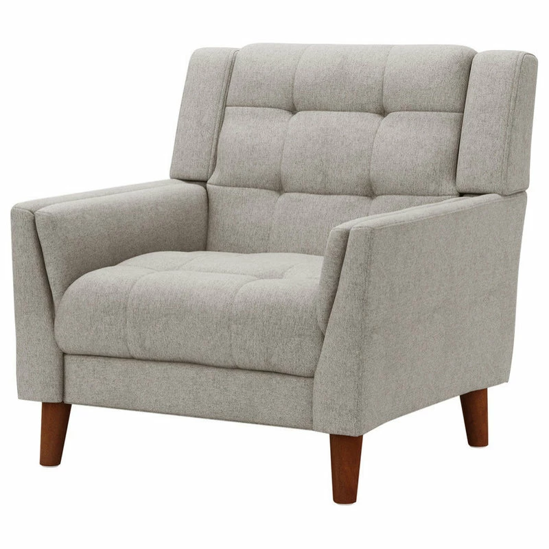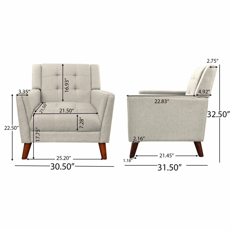 MID-CENTURY MODERN: Blending together iconic splayed legs with beautifully tufted upholstery, our club chair offers a mid-century look to your lounge space. With its clean lines and understated look, this chair uses new materials to reimagine a traditional design.