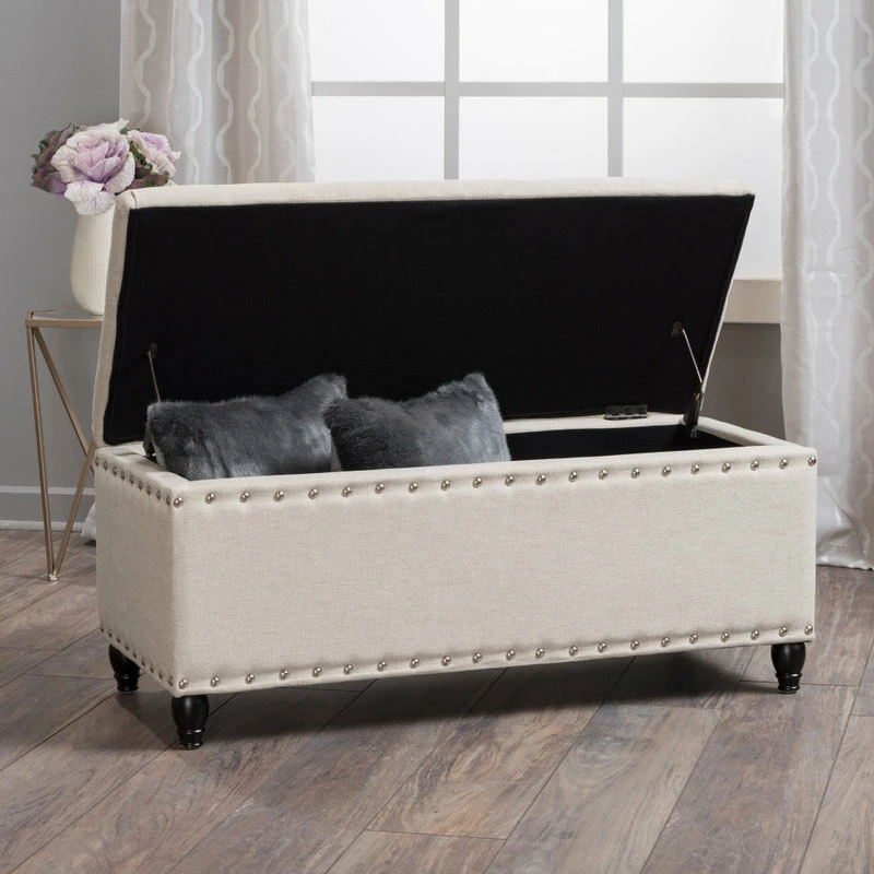 STORAGE SPACE: This ottoman comes with ample storage space for all of your pillows and blankets. This uses pressure hinges so that the lid will stay open on its own and will also ensure a soft close.