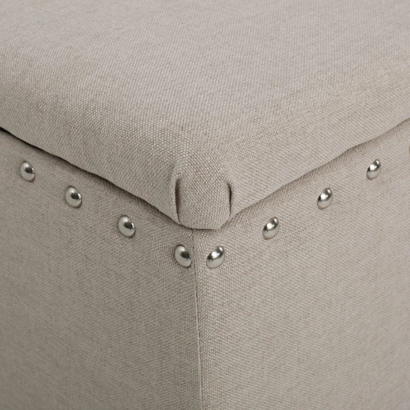 NAILHEAD ACCENTS: This ottoman spares no expense when it comes to its finishing details. Expertly styled, this piece has tasteful nailhead accents bordering the top and bottom edges of the ottoman base. Each nailhead is individually applied for a beautiful, hand-crafted touch.