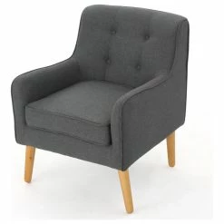 This mid-century arm chair is a great addition to any home. Featuring strong lines and a tufted back, it will match any decor you currently have. The cushion is extra padded to ensure maximum comfort and the wooden legs are perfectly styled for the mid-century look. Enjoy this arm chair in your home today.